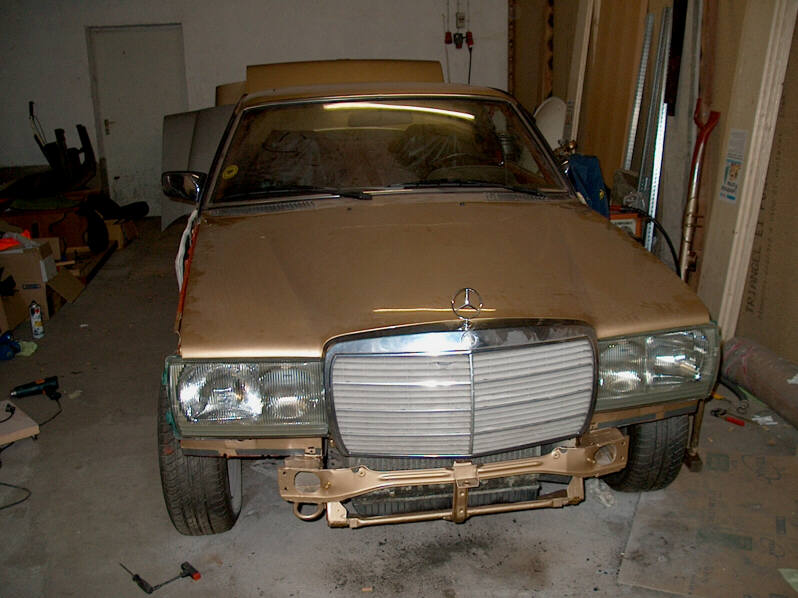 Die Einstellerei war ein Mist, weil die Haubenhalter durch den Unfall gestaucht sind, sieht man hier recht gut..