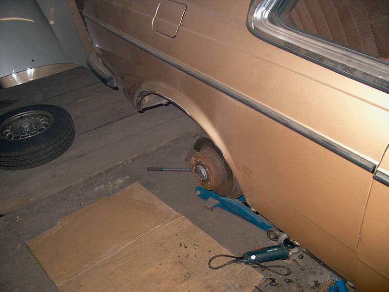 Dann gings an den Rost am hinteren Radlauf.. Rad ab, Flex anschmeißen, Staub fressen..
