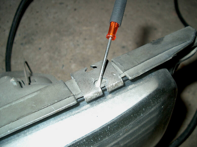 Die alten Gläser müssen runter, dazu sind die Klammern zu lösen. Mit einem kleinen Schraubenzieher mittig in die Klammer fahren und diese über den Glasrand hochhebeln.