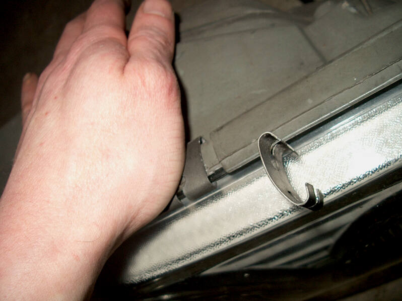 Die Dichtungen kann man bei der Gelegenheit mal mit Gummipflege einschmieren. Dann die neuen Gläser draufdrücken und zurechtrücken. Die Klammern werden dann vorne ins